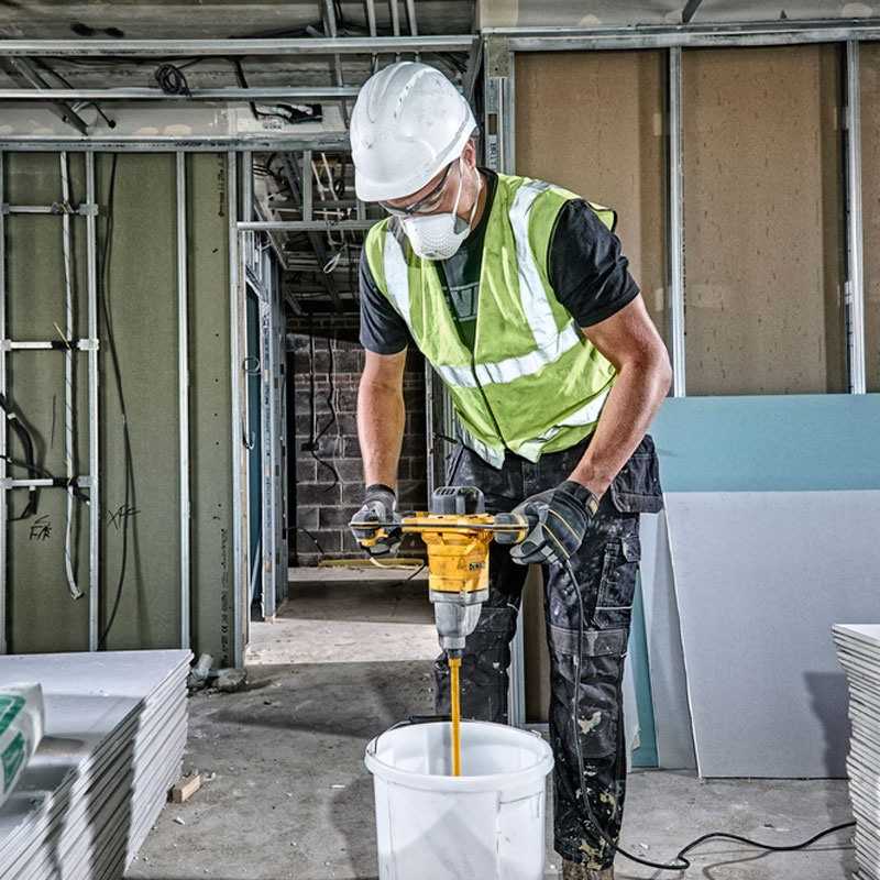 Mixerul Cu Maner Dual DeWalt DWD241 230V este ideal pentru amestecarea materialelor groase si vascoase de pe santier. Mixerul are un motor puternic de 1800 W si reglaj rapid cu trei trepte de putere pentru un control si o performanta optimizata. Mixerul dispune de un buton de pornire cu reglaj de turatie pentru un control suplimentar care poate fi configurat de catre utilizator in functie de materialul pe care doreste sa il amestece. Designul cu maner dublu al aparatului este ideal pentru un control complet si pentru confortul amestecarii prelungite. Conexiunea prin care se realizeaza prinderea paletelor de aparat este standard cu filet M14, pentru paleta preferata de utilizator. Carcasa mierului este metalica, robusta si protejeaza mixerul impotriva loviturilor si caderilor.