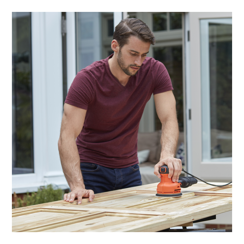 Slefuitorul orbital Black+Decker BEW210 ajuta la indepartarea rapida a materialului, motorul acesteia fiind foarte puternc, iar viteza lui va permit sa indepartati materialul nedorit fara efort. Slefuitorul orbital cu excentric este ideal pentru aplicatii de slefuire/polishare a lemnului, metalului, PVC si a suprafetelor vopsite(drepte sau curbate). Fixare rapida a hartiei abrazive pentru schimbarea usoara a accesoriilor, are zone de prindere multiple si posibilitate de prindere pe carcasa pentru confort sporit si control suplimentar la slefuire. Slefuitorul dispune de finisare de calitate ridicata, datorita miscarii orbitale va va permite sa efectuati in siguranta aplicatii de slefuirea lemnului fara sa lasati urme. Totodata acest slefuitor dispune de sac pentru praf inclus pentru o zona de lucru curata.