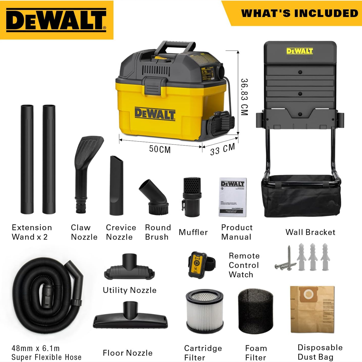 Aspiratorul umed/uscat Dewalt DXV23G este proiectat pentru a satisface nevoile de curatare atat in medii profesionale, cat si in gospodarii. Cu o capacitate de 23 de litri si un motor puternic de 1100W, acest dispozitiv asigura o aspirare eficienta a diverselor tipuri de murdarie, de la praf fin la lichide varsate. Designul sau versatil permite montarea pe perete, economisind spatiu in garaj sau atelier, sau utilizarea ca unitate portabila datorita manerului ergonomic integrat. Telecomanda wireless inclusa faciliteaza operarea de la distanta, sporind confortul si eficienta in utilizare.