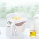 Cu ajutorul vasului gradat puteti cantari diferite ingrediente, precum faina, laptele, uleiul sau apa, intr-un singur vas. Cantarul este prevazut cu ecran LCD, usor de citit, precum si cu functie auto-off, benefica pentru economisirea energiei.