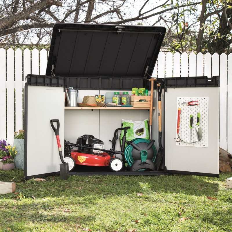 Dulap de gradina gri Keter Premier XL este o solutie ideala atat pentru depozitarea ghivecelor, galetilor si stropitorilor, ingrasamintelor pentru ingrijirea plantelor, jucariilor, gratarelor, masinilor de tuns iarba, hidrofoarelor, scarilor, ustensilelor de lucru, accesoriilor de gradina, pernelor mobilierului de gradina, furtunurilor si a diverselor obiecte utilizate in gospodarie, cat si pentru depozitarea bicicletelor, sau mascarea a doua pubele de gradina de 240 L. De asemenea, dulapul pentru gradina si terasa este ideal pentru organizarea sculelor de lucru din garaj.