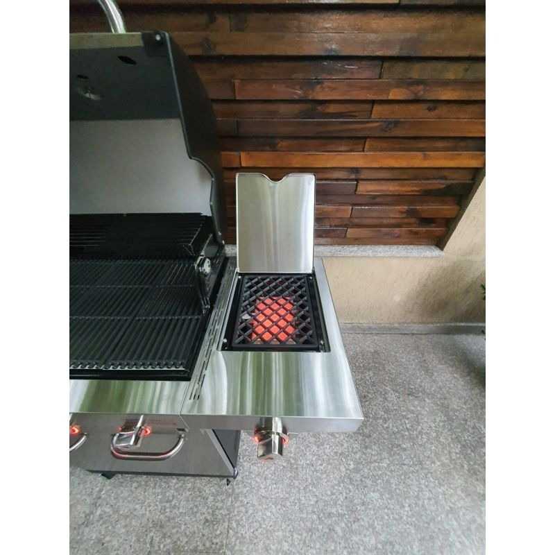 Gratarul porneste prin aprindere electronica SureFire, la atingerea unui buton si fara flacara deschisa. Gratarul dispune de trei arzatoare din otel inoxidabil, cu consum redus, orientate in sus, de inalta performanta, produc caldura maxima, distribuita uniform, cu un consum redus de gaz.