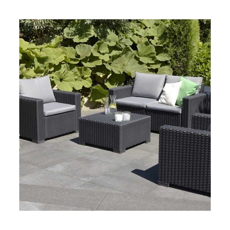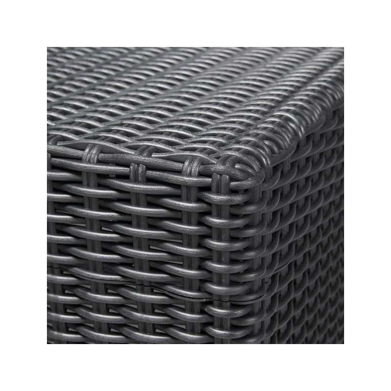 Cu o textura ce imita impletitura de ratan, in nuante grafit, masuta California adauga un plus de naturalete si modernitate ambientului. Forma sa patrata compacta o face usor de integrat in orice amenajare exterioara, oferind in acelasi timp suficient spatiu pentru a aseza obiectele esentiale pentru relaxare.