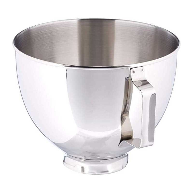 Bol din inox KitchenAid 4.3 L care iti permite sa amesteci, sa framanti si sa bati ingredientele cu stil. Conceput pentru a se potrivi mixerelor cu cap inclinat de 4,3 L, 4,7 L si 4,8 L, acest vas din otel periat ofera mixerului tau un aspect clasic si placut. Manerul sau faciliteaza scoaterea si atasarea in mixer si manevrarea.