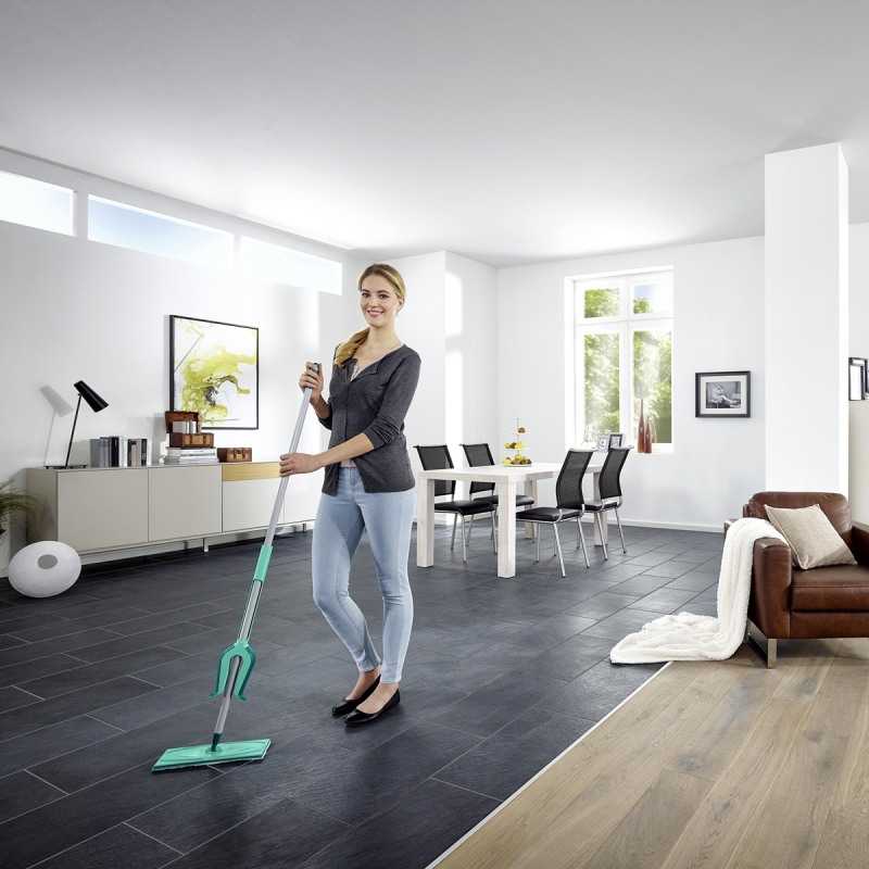 Mopul Leifheit Picobello Micro Duo M are o utilizare universala: indiferent daca este vorba de curatarea treptelor sau de zona din jurul picioarelor mesei sau scaunelor.