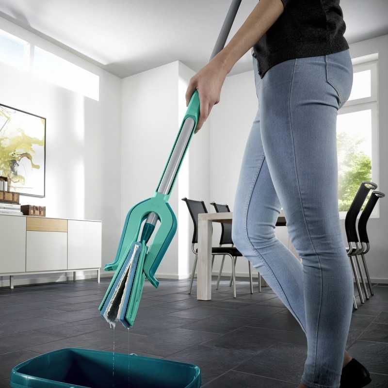 Mop Leifheit Picobello Micro Duo M dispune de un mecanism de presare in maner, ce ajuta la stoarcerea cu usurinta a mopului. Actiunea se repeta in functie de nivelul de umiditate dorit pentru laveta mopului. Mopul este comod si ofera eficienta sporita.