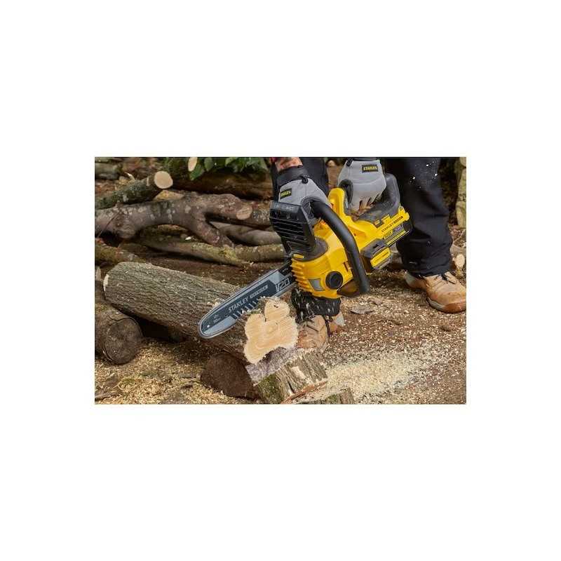 Ferastraul cu lant STANLEY FATMAX V20 de 18 V, de 30 cm, are o bara de 30 cm si o viteza a lantului de 7,7 m/s pentru o taiere rapida si eficienta, precum si un mecanism de siguranta la ruperea lantului, care opreste lantul in mai putin de 1 secunda; lantul se tensioneaza rintr-un sistem care nu necesita scule, pentru reglaje rapide si usoare ale lantului si un sistem de ungere automata pentru intretinerea minima a sculei. Usor si compact pentru oboseala redusa a utilizatorului si completat cu un indicator integrat al starii de incarcare a bateriei pentru monitorizarea convenabila a nivelurilor de incarcare a bateriei si un carlig integrat pentru depozitare in siguranta. Face parte din noul sistem fara fir STANLEY® FATMAX® V20 de 18 V. Bateria de 4,0 Ah si incarcatorul de 2 A sunt furnizate separat.