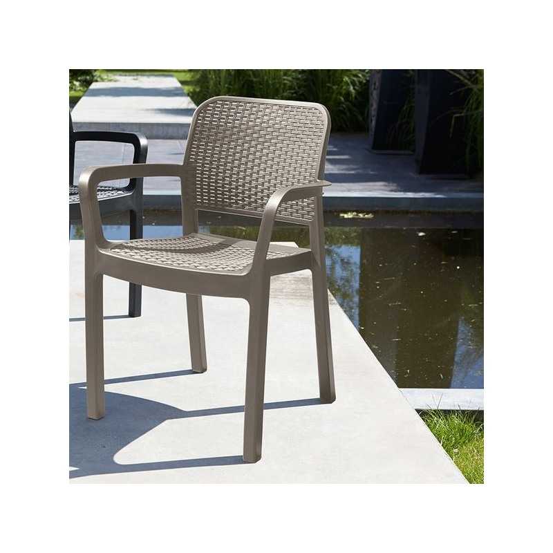 Scaun cappuccino Keter Samanna este fabricat din material plastic, are durabilitate ridicata si este rezistent la raze UV si intemperii.