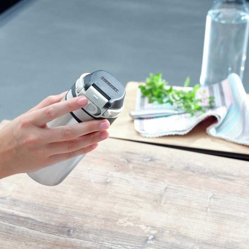 Datorita tehnologiei cu izolare dubla a peretilor din inox, termosul Leifheit Flip mentine bautura preferata calda, pana la 6 ore si rece, pana la 18 ore. Capacul termosului este prevazut cu inchidere rezistenta la scurgeri, precum si sistem de blocare pentru prevenirea deschiderii accidentale. Cu ajutorul butonului, acesta se indeparteaza usor, chiar si cu o singura mana. De asemenea, capacul include un filtru detasabil, pentru indepartarea plantelor si a fructelor, ce se poate curata cu usurinta.