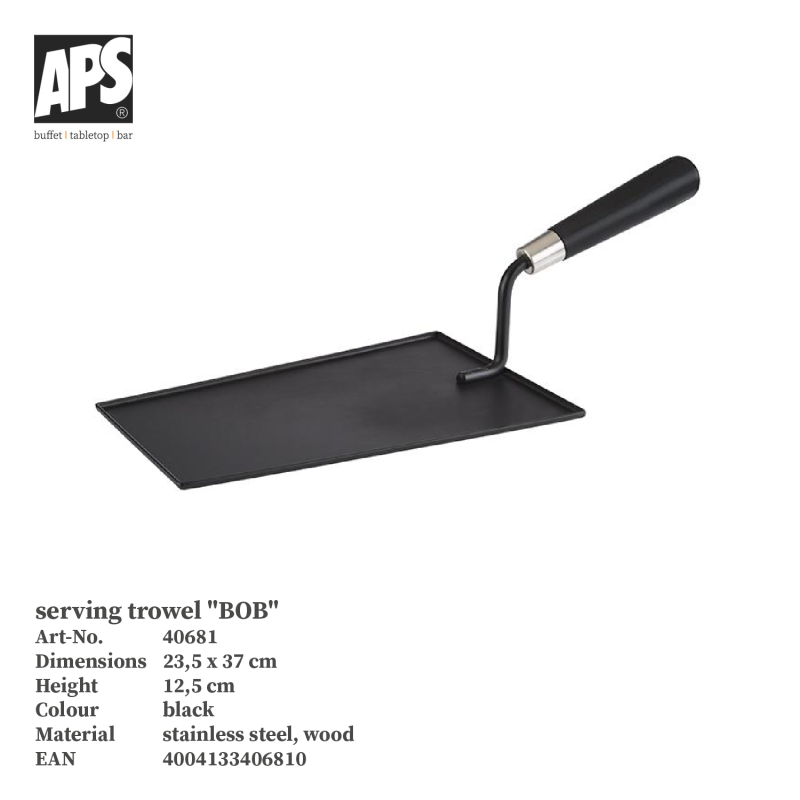 Spatula de servire inox neagra cu maner din lemn APS 23.5 x 15.5 cm, potrivita pentru prezentarea si servirea diverselor preparate din segmentul Horeca.